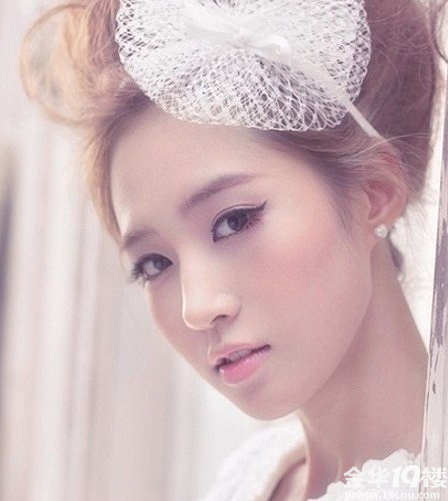 Jessica韩式新娘妆画法点评——柔美的夸张版花苞头发型。可爱的齐刘海,随意地大侧分,形成自然的感觉。Jessica一般都很少有浓妆的打扮,但是精心刷过的睫毛是一定要的。这样才能凸显眼部的轮廓。让眼睛更加有神。