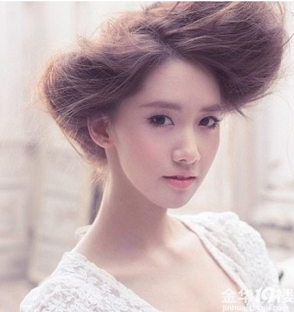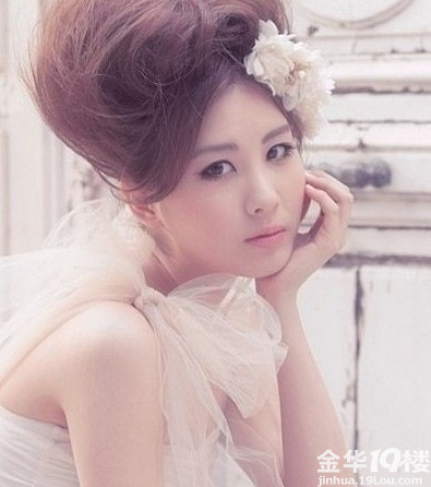 允儿韩式新娘妆的画法点评——夸张的发型满适合有个性的新娘,为了配合这款个性发型,妆容没有过于突出只是简单而精致的描画了五官。